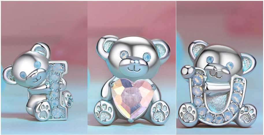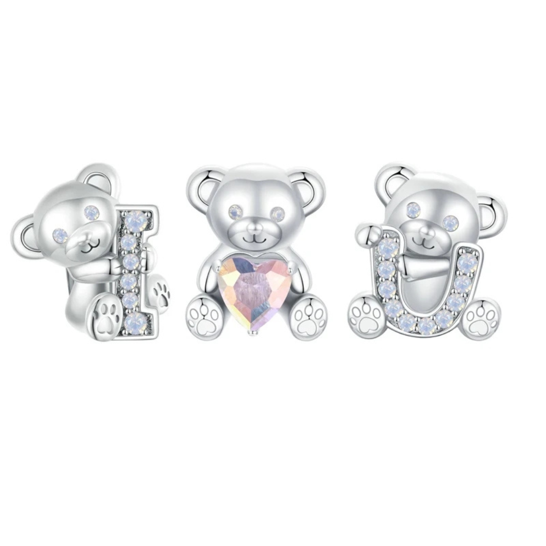 Sterling Silver 925 Teddy Bears I Love U Bead Charms