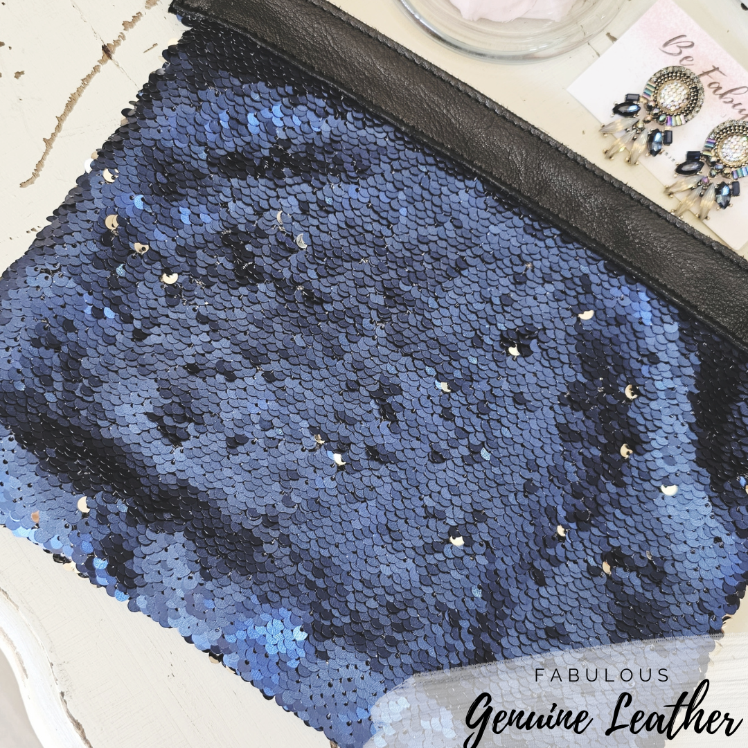 The Fabulous Genuine Leather Blue Bling Pouch