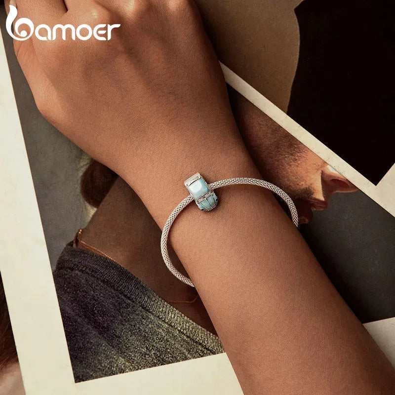 Vintage Blue "Folla" Beetle Car Bead Charm